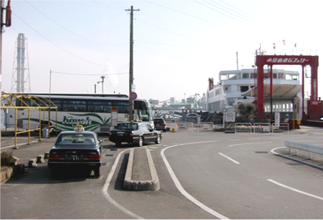 現在は、駐車場、フェリー乗場となっています。